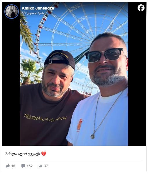 ინფორმაციას სოციალურ ქსელში მისი მეგობარი, ამიკო ჯანელიძე ავრცელებს.