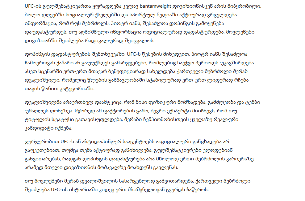 Post Views: 1,635 Post navigation “რაღა ეხლა წააგე ბიჭო და დატოვე ეს ხელოსნები უფულოდ” – მერაბ დვალიშვილი ქართველი ქომაგის კომენტარმა გააღიზიანა – როგორ უპასუხა მებრძოლმა მასზე დაწერილ სტატუსს ? 7,6 მაგნიტუდის სიმძლავრის მიწისძვრა მოხდა – სად იყო ეპიცენტრი