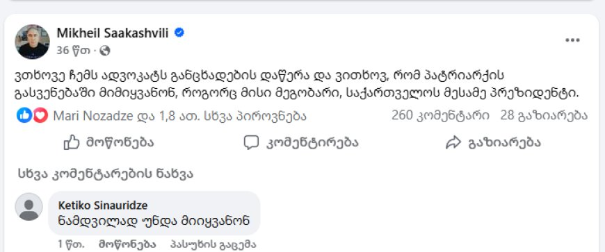 რა განაცხადა ახლახან მიხეილ სააკაშვილმა, ამას არავინ მოელოდა: Post Views: 650 პოსტის ნავიგაცია ოქრო, მარგალიტები და სკვნილი – დეკანოზ ილია ჭიღლაძის სკანდალური შეფასება “ახალი პატრიარქი ასეთი იქნება! ” – რა იწინასწარმეტყველა ლელა კაკულიამ წლების წინ