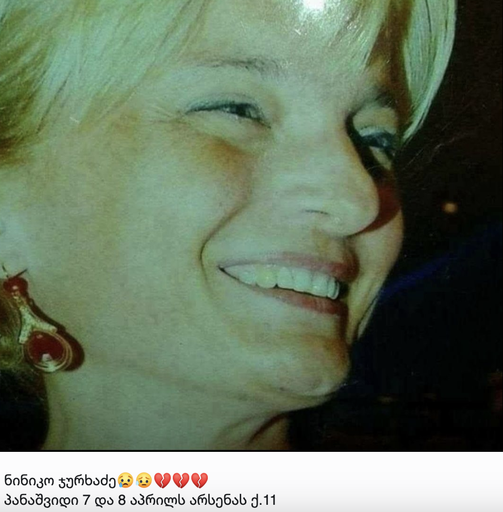 „ნინიკო ჯურხაძე. პანაშვიდი 7 და 8 აპრილს არსენას ქ.11